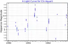 - ↑ "chi Aqr -- Semi-regular pulsating Star", SIMBAD, Centre de Données astronomiques de Strasbourg, retrieved 2012-07-05.