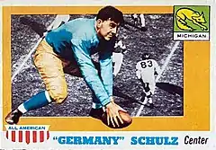 The game most prominently featured a duel between star German centers. The Michigan Alumnus wrote: "'Germany' Schulz was far and away the star of the game. In his usual style he was in every play, tackling runners for loss, falling on the ball in fumbles, and opening wide holes in the line for Michigan gains. . . . [H]e showed conclusively that he has no equal in the keystone position."[12] A Nashville source wrote "In the duel of centers, Stone of Vanderbilt, had the best of "Germany" Schulz. Michigan's massive center. Stone's play was spectacular all the way."[15]