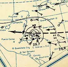 - ↑ Weather map of tropical system 193106 on August 29, 1931 (JPG) (Weather map). United States National Oceanic and Atmospheric Administration. 29 August 1931. Retrieved 1 May 2013.