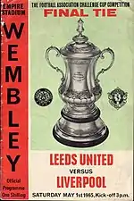 The 1965 FA Cup final was an association football match between Liverpool and Leeds United on 1 May 1965 at Wembley Stadium, London. It was the final match of the 1964–65 FA Cup, the 93rd season of England's primary cup competition, the Football Association Challenge Cup, better known as the FA Cup. Liverpool were appearing in their third final, they had lost the previous two in 1914 and 1950, while Leeds were appearing in their first.