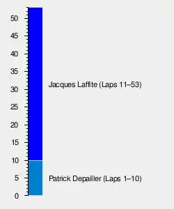 | 1 | 26 | Ligier-Ford | G | 53 | 1:36:03.21 | 1 | 9 | |