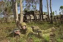 In 1982, the "brigade" designations were readopted.[9][34] Brigadier John Sheldrick was in command of the brigade at the time and early the year the 1st Armoured Regiment was placed under the 1st Brigade's command as part of the Army's mechanisation trials. The new role of the 1st Brigade as a mechanised force was confirmed in 1983 and following this the capability was developed. This saw the 5th/7th Battalion, Royal Australian Regiment (5/7 RAR), re-equipped with armoured personnel carriers, which they began to receive in July 1983.[35] During the 1980s, one of the brigade's other infantry battalions, the 3rd Battalion, Royal Australian Regiment, began developing the Australian Army's parachute capability, and by late 1983 it had become a specialised parachute infantry battalion.[36] They were later transferred to the 3rd Brigade.[37]