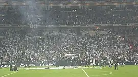 ![]() Tottenham Hotspur players and fans celebrating their win the 2008 Football League Cup Final  | ||||