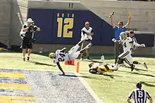 - ↑ Carbaugh, Dane (November 23, 2014). "UCLA's Sam Handler Tries to Prevent USC from Stabbing Logo at Midfield". Sporting News. Retrieved November 23, 2014.