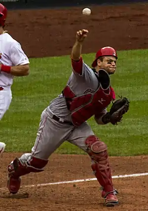On November 28, Reds claimed outfielder Gabby Guerrero from the Arizona Diamondbacks and catcher Juan Graterol from the Los Angeles Angels off waivers. Keyvius Sampson and Ramon Cabrera were designated for assignment to make room on the 40 man roster.[2][3] The latter two were later non-tendered, along with Guerrero, though he was later re-signed to a minor league deal.