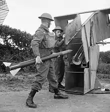 The brigade was heavily engaged throughout the Battle of Britain. A few bombers got through to Portsmouth on 10 July,[20] and the Portsmouth and Southampton AA guns were in action on 15 August, claiming one 'kill',[21] Again, on 18 August, German air raids crossed Southern England and appeared over RAF airfields at West Malling, Manston, Kenley, Biggin Hill, Gravesend and the town of Sevenoaks, all within four and a half hours in the afternoon. The guns of 35 AA Bde and its neighbours were in action and accounted for 23 enemy aircraft.[22] On 24 August a raid eluded RAF Fighter Command's fighters and bombed the city and dockyard badly, killing over 100 people despite the efforts of the AA guns, although another raid two days later was driven off by fighters and AA fire, and only dropped a few bombs on the outskirts of the city.[23][24] This was the start of the Portsmouth Blitz).