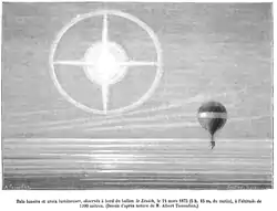 A few years later, the two brothers ascended in another hot air balloon, this one called the Zénith. On 23 March and 24 March 1875 they flew from Paris to Arcachon, on the other side of the country, near Bordeaux, a total distance of 600 km (400 mi). During this ascent, he drew the countrysides below as naturally as possible. He also observed that when the moon passed above the clouds, the upper surface of the clouds shimmered like a lake, and recorded this in a drawing (left).
