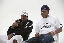 Aided by the arrivals of Theo Ratliff, Eric Snow, Larry Hughes, Aaron McKie, and new coach Larry Brown, Iverson continued to help the 76ers move forward the following season, as they improved nine games to finish 31–51.[36] During their time together in Philadelphia, Iverson and fellow guard Hughes were nicknamed "The Flight Brothers", for their above-the-rim and athletic play style.[37][38]