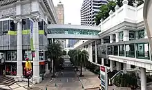 Amarin Plaza is located on Phloen Chit Road, near the southeast corner of Ratchaprasong Intersection, in Bangkok's Pathum Wan District. It is connected via skywalk to the Chit Lom Station of the BTS Skytrain, as well as the other Gaysorn Village buildings opposite and the many other shopping malls in the area. It also has a direct footbridge to the neighbouring Grand Hyatt Erawan. Amarin Plaza features 55,000 square metres (590,000 sq ft) of gross retail area in its five storeys, which houses over 300 shops.[12] It is particularly known for Thai arts and crafts shops, and also has a large food court.[14][15] Amarin Tower has 21,000 square metres (230,000 sq ft) of office space for rent in the 22-storey building.[12]