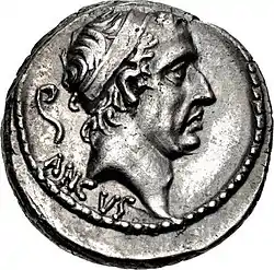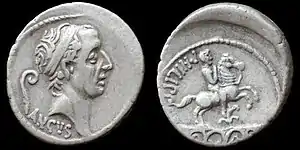 | Silver denarius struck by Lucius Marcius Philippus in Rome 56 BC. | |