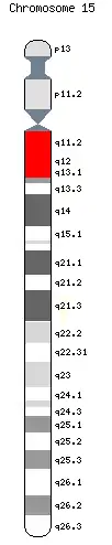 Region 15q11-13 is implicated in both Angelman syndrome and Prader–Willi syndrome (PWS). While AS results from mutation, loss or abnormal imprinting involving the UBE3A gene within this region on the maternal chromosome,[16] loss of a different cluster of genes within the same region on the paternal chromosome causes PWS.[18]