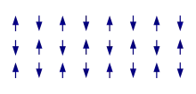 Unlike ferromagnetism, anti-ferromagnetic interactions can lead to multiple optimal states (ground states—states of minimal energy). In one dimension, the anti-ferromagnetic ground state is an alternating series of spins: up, down, up, down, etc. Yet in two dimensions, multiple ground states can occur.