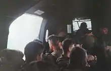 Black people were not allowed to run businesses or professional practices in areas designated as "white South Africa" unless they had a permit – such being granted only exceptionally. Without a permit, they were required to move to the black "homelands" and set up businesses and practices there. Trains, hospitals and ambulances were segregated.[101] Because of the smaller numbers of white patients and the fact that white doctors preferred to work in white hospitals, conditions in white hospitals were much better than those in often overcrowded and understaffed, significantly underfunded black hospitals.[102] Residential areas were segregated and blacks were allowed to live in white areas only if employed as a servant and even then only in servants' quarters. Black people were excluded from working in white areas, unless they had a pass, nicknamed the dompas, also spelt dompass or dom pass. The most likely origin of this name is from the Afrikaans "verdomde pas" (meaning accursed pass),[103] although some commentators ascribe it to the Afrikaans words meaning "dumb pass". Only black people with "Section 10" rights (those who had migrated to the cities before World War II) were excluded from this provision. A pass was issued only to a black person with approved work. Spouses and children had to be left behind in black homelands. A pass was issued for one magisterial district (usually one town) confining the holder to that area only. Being without a valid pass made a person subject to arrest and trial for being an illegal migrant. This was often followed by deportation to the person's homeland and prosecution of the employer for employing an illegal migrant. Police vans patrolled white areas to round up blacks without passes. Black people were not allowed to employ whites in white South Africa.[104]