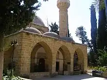 Arab Ahmet Mosque is situated in the western Arab Ahmet Quarter of Nicosia, the capital of Cyprus. It was built in the late 16th century in classical Ottoman architectural style.[13][15] It is famous both for its beautiful Turkish architectural style and for the graves of important people in its courtyard. It was built in the early 18th century in memory of Arab Ahmet Pasha, one of the Turkish commanders during the conquest of Cyprus. In 1845, it was renovated due to the great amount of renovations it needed. It is the only mosque in Cyprus to exhibit typical Turkish domes. It is rectangular and a large central dome covers its main body. Three smaller domes cover the entrance, and four more cover corners of the mosque.[13]