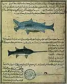 Arabic miniatures (Arabic: ٱلْمُنَمْنَمَات ٱلْعَرَبِيَّة, Al-Munamnamāt al-ʿArabīyyah) are small paintings on paper, usually book or manuscript illustrations but also sometimes separate artworks that occupy entire pages. The earliest example dates from around 690 AD, with a flourishing of the art from between 1000 and 1200 AD in the Abbasid caliphate. The art form went through several stages of evolution while witnessing the fall and rise of several Islamic caliphates. Arab miniaturists absorbed Chinese and Persian influences brought by the Mongol destructions, and at last, got totally assimilated and subsequently disappeared due to the Ottoman occupation of the Arab world. Nearly all forms of Islamic miniatures (Persian miniatures, Ottoman miniatures and Mughal miniatures) owe their existences to Arabic miniatures, as Arab patrons were the first to demand the production of illuminated manuscripts in the Caliphate, it wasn't until the 14th century that the artistic skill reached the non-Arab regions of the Caliphate.[1][2][3][4][5][6]