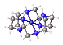 - ↑ Morooka, M.; Ohba, S.; Toriumi, K. (1992). "Electron-density distribution in crystals of 1,4,7,10,13,16-hexaazacyclooctadecanecobalt(III) trichloride, meso-[Co(hexaen)]Cl3 at 106 K". Acta Crystallographica Section B: Structural Science. 48 (4): 459–463. doi:10.1107/S0108768192002714.