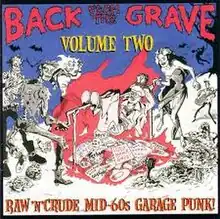 Back from the Grave, Volume 2 (CD) is the second installment in the Back from the Grave compact disc-exclusive series of garage rock compilations assembled by Tim Warren of Crypt Records. It was released on August 23, 1996.[1][2] Its track listing differs from that of the LP version, which is part of the Back From the Grave LP-edition series, also on Crypt. In keeping with all of the entries in the series, and as indicated in the subheading which reads "Raw 'n' Crude Mid-60s Garage Punk!," this collection consists of many songs which display the rawer and more aggressive side of the genre and are often characterized by the use of fuzztone-distorted guitars and rough vocals.[1][2][3] Accordingly, the set generally excludes psychedelic, folk rock, and pop-influenced material in favor of basic primitive rock and roll.[3] The packaging features a booklet containing well-researched liner notes written by Tim Warren which conveys basic information about each song and group, such as origin, recording date, and biographical sketches, usually written in a conversational style that includes occasional slang, anecdotes, humorous asides.[4][3]