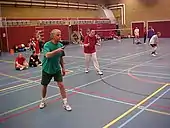 Early on, the game was also known as Poona or Poonah after the garrison town of Poona (Pune),[8][10] where it was particularly popular and where the first rules for the game were drawn up in 1873.[6][7][lower-alpha 2] By 1875, officers returning home had started a badminton club in Folkestone. Initially, the sport was played with sides ranging from 1 to 4 players, but it was quickly established that games between two or four competitors worked the best.[4] The shuttlecocks were coated with India rubber and, in outdoor play, sometimes weighted with lead.[4] Although the depth of the net was of no consequence, it was preferred that it should reach the ground.[4]