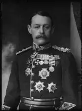 Sources differ on the number of Mahdists killed in the battle, ranging between 250 and 850.[30][36] On the Anglo-Egyptian side, twenty-three men were killed and sixty-one wounded. The 10th Sudanese Battalion alone accounted for sixteen of the twenty-three killed and thirty-four of the sixty-one wounded.[36] The Mahdist commander, Mohammed Zain, was captured in battle and held prisoner.[37] Major-General Hunter captured a substantial supply of weapons, camels, horses, and property from the town.[31] After the battle, the soldiers of MacDonald's brigade were berated by their commander for opening fire during their advance across the three hundred yard gradient between the ridge of the plateau and the town's defenses. Lieutenant MacDonald had not ordered them to do so, and considered it flagrant insubordination that botched his plan for a 150 yard bayonet charge.[33] Brevet-Major Henry Sidney and Lieutenant Edward Fitzclarence, great-grandson of King William IV, were the only two British officers killed in action throughout the entire campaign.[26] The dead of Major-General Hunter's column were buried near the town, the British officers in decorated tombs and the rest in unmarked graves. There is a legend which holds that the tomb of Lieutenant Sidney, one of the two British officers killed during the battle, is vigilantly guarded every night by the ghosts of those killed in his battalion.[38]
