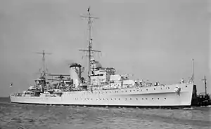 Graf Spee had sailed into the South Atlantic in August 1939, before the war began, and had begun commerce raiding after receiving the appropriate authorisation on 26 September 1939.[5] Harwood's squadron was one of several search groups sent in pursuit by the British Admiralty and sighted Graf Spee off the estuary of the River Plate near the coasts of Argentina and Uruguay.[6]