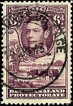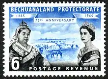 Bechuanaland postage stamps were issued from 1888 to 1966. Overprinted stamps were issued until 1932, when the first stamps inscribed "Bechuanaland Protectorate" were issued. On 14 February 1961 the South African rand was introduced, necessitating the surcharging of the existing definitive stamps until new ones were issued.