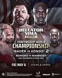- ↑ "Bellator MMA | BELLATOR MMA SET FOR RETURN TO PARIS ON FRIDAY, MAY 6 WITH MASSIVE HEAVYWEIGHT WORLD CHAMPIONSHIP BOUT". www.bellator.com. Retrieved 2022-01-30.