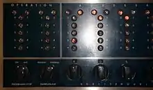 (the machine was running when the photograph was taken and the active bits are visible in the close-up and just discernible in the full panel picture)