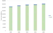 - ↑ Recalculated from a total production of 43678925 tonnes wood pellets (FAO 2020), with 17 GJ/t energy content.