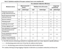 - ↑ JRC 2014, pp. 23, 51–52. Note that the JRC use the term "payback time" in the sense of "parity time" as defined in Carbon accounting principles above. See JRC 2014, p. 16.