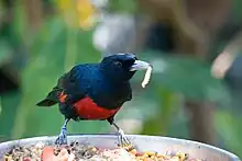 The black-and-crimson oriole was originally described in the genus Leptopteryx (a synonym for Artamella). Along with the black, maroon and silver orioles, it belongs to a clade of red and black orioles.[2] Alternate names for the black-and-crimson oriole include the black-crimson oriole and crimson-breasted oriole.