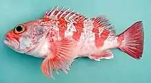 Helicolenus dactylopterus, blackbelly rosefish, bluemouth rockfish, and bluemouth seaperch, is a species of marine ray-finned fish belonging to the subfamily Sebastinae which is classified within the family Scorpaenidae. This Atlantic species is a typical sit-and-wait predator with a highly cryptic coloration.[3]