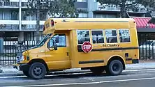 In another version, when showing a blue and yellow demonstrator unit to school officials, Luce overheard the positive reception of school children who had seen the bus, who nicknamed it "a pretty blue bird", and the name was chosen for the company.[5] Conversely, since the end of the 1930s, yellow would become the exterior color associated with American-manufactured school buses.