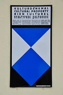 The Blue Shield, formerly the International Committee of the Blue Shield, is an international organization founded in 1996 to protect the world's cultural heritage from threats such as armed conflict and natural disasters.[1] Originally intended as the "cultural equivalent of the Red Cross",[2][3] its name derives from the blue shield symbol designed by Jan Zachwatowicz, used to signify cultural sites protected by the 1954 Hague Convention for the Protection of Cultural Property in Armed Conflict.