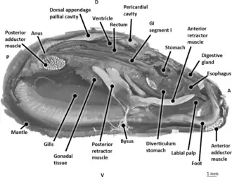 - 1 2 3 Eggermont, Mieke; Cornillie, Pieter; Dierick, Manuel; Adriaens, Dominique; Nevejan, Nancy; Bossier, Peter; Van Den Broeck, Wim; Sorgeloos, Patrick; Defoirdt, Tom; Declercq, Annelies Maria (2020). "The blue mussel inside: 3D visualization and description of the vascular-related anatomy of Mytilus edulis to unravel hemolymph extraction". Scientific Reports. 10 (1): 6773. Bibcode:2020NatSR..10.6773E. doi:10.1038/s41598-020-62933-9. PMC 7174403. PMID 32317671.