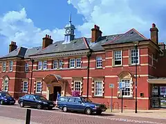 The council has its main offices at Eastleigh House on Upper Market Street in Eastleigh.[22] The building does not have a council chamber and so full council meetings are held in various locations, including The Point, a theatre which is the former town hall that was built in 1899 for the old Eastleigh and Bishopstoke Urban District Council. It remained the town hall until 1974 when new offices were built at the junction of Leigh Road and Villeneuve St Georges Way.[23]