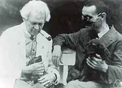 A succeeding generation of mathematics students attended the ENS during the 1920s, including Weil and others, the future founders of Bourbaki. During his time as a student, Weil recalled a prank in which an upperclassman, Raoul Husson, posed as a professor and gave a math lecture, ending with a prompt: "Theorem of Bourbaki: you are to prove the following...". Weil was also aware of a similar stunt around 1910[3] in which a student claimed to be from the fictional, impoverished nation of "Poldevia" and solicited the public for donations.[13][14] Weil had strong interests in languages and Indian culture, having learned Sanskrit and read the Bhagavad Gita.[15][16] After graduating from the ENS and obtaining his doctorate, Weil took a teaching stint at the Aligarh Muslim University in India. While there, Weil met the mathematician Damodar Kosambi, who was engaged in a power struggle with one of his colleagues. Weil suggested that Kosambi write an article with material attributed to one "Bourbaki", in order to show off his knowledge to the colleague.[17] Kosambi took the suggestion, attributing the material discussed in the article to "the little-known Russian mathematician D. Bourbaki, who was poisoned during the Revolution." It was the first article in the mathematical literature with material attributed to the eponymous "Bourbaki".[18][19][20] Weil's stay in India was short-lived; he attempted to revamp the mathematics department at Aligarh, without success.[21] The university administration planned to fire Weil and promote his colleague Vijayaraghavan to the vacated position. However, Weil and Vijayaraghavan respected one another. Rather than play any role in the drama, Vijayaraghavan instead resigned, later informing Weil of the plan.[22] Weil returned to Europe to seek another teaching position. He ended up at the University of Strasbourg, joining his friend and colleague Henri Cartan.[23]