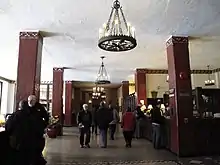 The interior design of the hotel also underwent several changes. Artist and interior designer Henry Lovins originally suggested a "Mayan revival" theme with Hispano-Moresque influences.[10] However, the husband and wife team of Arthur Upham Pope and Phyllis Ackerman was selected over Lovins.[35] Drawing on their experience as art historians, Ackerman and Pope created a style that mixed Art Deco, Native American, Middle Eastern, and Arts and Crafts styles.[40] The interior work was carried out by a number of artisans under their supervision. Much of the decoration originally used was Persian, and Ackerman and Pope would go on to become art consultants in Iran.[41]