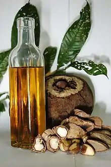 Brazil nut oil is used as a lubricant in clocks,[45] in the manufacturing of paint and cosmetics, such as soap and perfume.[41] Because of its hardness, the Brazil nutshell is often pulverized and used as an abrasive to polish materials, such as metals and ceramics, in the same way as a jeweler's rouge. The charcoal from the nut shells may be used to purify water.[41]