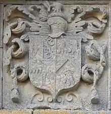 - ↑ Inscribed with the following Latin text in gothic lettering:
