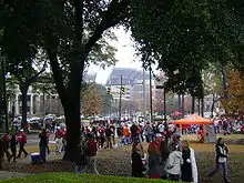 View of the northern side of the stadium (background) and tailgaters as seen from the Denny Chimes vicinity of The Quad in 2008