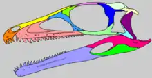 Additional remains were discovered in 2015 and published in 2018.[2][3] These include a mostly complete skeleton, CAPPA/UFSM 0035, which preserves a complete skull and most bones apart from tail vertebrae. Additional dinosaur bones from the Buriol locality may also belong to Buriolestes, but their assignment is uncertain. They include a femur (ULBRA-PVT289), a portion of an individual's hip and hindlimbs (ULBRA-PVT056), and a lone axis vertebra (CAPPA/UFSM 0179). These new finds have made Buriolestes among the most complete Triassic dinosaurs known, comparable to Eoraptor, Herrerasaurus, and Coelophysis.[3]