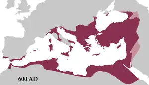 Neither empire was given much chance to recover, as within a few years they were struck by the onslaught of the Arabs, newly united by Islam,[172] which Howard-Johnston likened to "a human tsunami".[173] According to George Liska, the "unnecessarily prolonged Byzantine–Persian conflict opened the way for Islam".[174] The Sasanian Empire rapidly succumbed to these attacks and was completely destroyed. During the Byzantine–Arab Wars, the exhausted Byzantine Empire's recently regained eastern and southern provinces of Syria, Armenia, Egypt, and North Africa were also lost, reducing the empire to a territorial core consisting of Anatolia and a scatter of islands and footholds in the Balkans and Italy.[168] However, unlike Persia, the Byzantine Empire ultimately survived the Arab assault, holding onto its remaining territories and decisively repulsing two Arab sieges of its capital in 674–678 and 717–718.[166][175] The Byzantine Empire also lost its territories in Crete and southern Italy to the Arabs in later conflicts, though these too were ultimately recovered.[176][177] However, some losses were permanent, such as the loss of Spania, the remaining Byzantine holdings in the Iberian Peninsula, which was conquered by the Visigoths by 629.[178] Similarly, Corsica was taken by the Lombards in the 8th century.[179] The Balearic Islands, Sardinia and Sicily were captured by Arabs in the 10th century.[180]