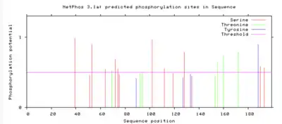 - ↑ ExPASy Bioinformatics Resource Portal entry on NetPhos 3.1 Serve. http://www.cbs.dtu.dk/services/Net%5B%5DPhos/. Retrieved 2020-7-31.