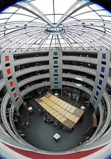 Interior of office building 40 at the Meyrin site. Building 40 hosts many offices for scientists from the CMS and ATLAS collaborations.