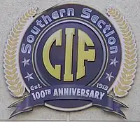 For its first year of operation, the organization was called the Southern California Interscholastic Athletic Council (SCIAC). That acronym was taken over by the Southern California Intercollegiate Athletic Conference in 1915 after the Southern Section name was established. CIF was officially formed in 1914 and became statewide in 1917.[1] The service area was larger, encompassing what is now the CIF Los Angeles City Section, which broke off in 1935, and the CIF San Diego Section which broke off in 1960. Imperial County was once part of the section as well, but broke off in 2000 to join the San Diego Section.[2] At various points in time, schools in Arizona, Nevada,[3] and Tijuana, Baja California, Mexico,[4] were part of the section.[1]