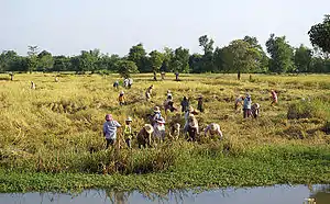 The United Nations designates Cambodia as a least developed country.[18] Cambodia is a member of the United Nations, ASEAN, the RCEP, the East Asia Summit, the WTO, the Non-Aligned Movement and La Francophonie. Cambodia is a dialogue partner of the Shanghai Cooperation Organisation.[19][20] Agriculture remains the dominant economic sector, with growth in textiles, construction, garments, and tourism leading to increased foreign investment and international trade.[21] Cambodia is considered among the most vulnerable countries to climate change.