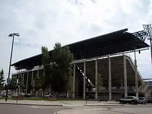 Camp d'Esports is a multi-use stadium in Lleida, Catalonia. It is currently used mostly for football matches and is the home ground of Lleida Esportiu. The stadium holds 13,500 seats, and the dimensions for the football field are 102x68 meters.[1] The architect responsible for the project was Adrian Florensa.[2]