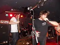 The 3tards were a Canadian hardcore punk rock band that was formed in Brampton, Ontario, in 2001.[40] They released two full-length albums - Greatest Hits Vol. 2 (Wounded Paw, 2004, re-released by Spinerazor/Universal Music Canada, 2006) and Crystal Balls (Spinerazor/Universal Music Canada, 2005).[41] They were known for their satirically outrageous, vulgar and sexual lyrics, wild live shows including costumes, theatrics (they've staged live births,[42] circumcisions,[43] blood baptisms,[44] etc. as part of their act), and socially liberal politics (for example following its legalization in Canada they held a mock gay wedding on stage between John Tard and Fox Tard, including a passionate kiss between the two).[45] They have been described as "Canada's most politically incorrect punk band."[46]