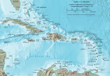 - ↑ Since the Lucayan Archipelago is located in the Atlantic Ocean rather than Caribbean Sea, the Bahamas are part of the West Indies but are not technically part of the Caribbean, although the United Nations groups them with the Caribbean.