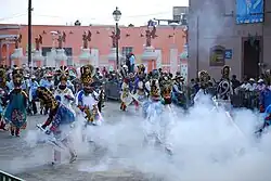 The Carnival of Huejotzingo is the only carnival of its kind and one of the most important in Mexico.[1] Festivities start in the morning of the Saturday before Ash Wednesday and end in the evening of Shrove Tuesday, with the most important days being Monday and Tuesday.[2][3] About 12,000 people of the municipality participate in costume, most which carry hand carved muskets, with which gunpowder is set off.[4][5]